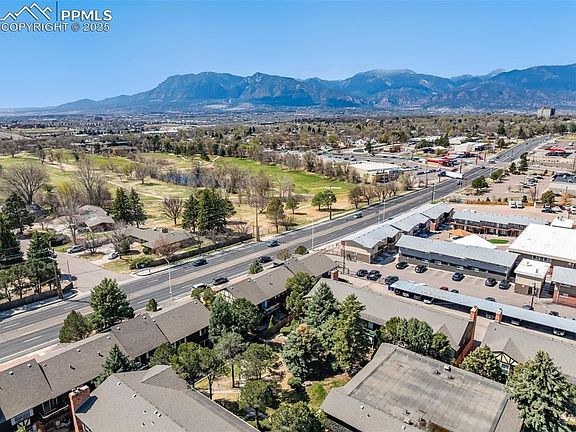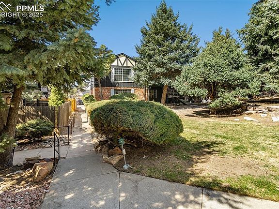 This centrally located condo offers charm, function, and flexibility, all just minutes from downtown Colorado Springs. Situated one block from Valley Hi Golf Course and Memorial Park, the location provides unbeatable access to outdoor recreation, Powers corridor shopping and dining, Peterson SFB, and Memorial Central Hospital. Set in a Tudor-style community with mature trees, brick chimneys, and a welcoming courtyard-style green space, this home stands out from cookie-cutter builds and includes a designated covered parking spot. Inside, enjoy main-level living with an open-concept layout and stylish updates throughout. Vinyl plank floors, tasteful finishes, and abundant natural light create a warm and modern aesthetic. The renovated kitchen features new cabinetry, updated counters, a single basin sink, and stainless steel appliances. A cozy wood-burning fireplace anchors one of two generous living spaces. Both bedrooms have attached baths, ideal for privacy or guest stays, and the spacious primary suite includes a walk-in closet and updated bathroom. Ample storage closets throughout add everyday functionality. Whether you're seeking a low-maintenance personal residence or a proven investment property—the home has been successfully run as an Airbnb—this unit offers incredible value in one of the city's most convenient locations, with easy access to Hwy 24 and Fort Carson.