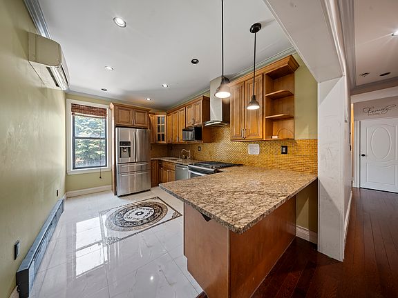 Welcome to this spacious and beautifully maintained 3-bedroom, 2-bathroom duplex apartment located in the heart of East Flatbush, just seconds from the 2 & 5 trainsideal for commuters seeking convenience and comfort. This expansive residence features three generously sized bedrooms, each capable of comfortably accommodating a king-sized bed with room to spare. The duplex layout provides added privacy and functionality, with separation between living and sleeping areas. The modern kitchen is equipped with sleek stainless steel appliances, offering both style and practicality for home cooking and entertaining. Just off the living area, you'll find direct access to a private deck, perfect for relaxing, hosting, or enjoying some fresh air. Additional highlights include: In-unit washer and dryer for added convenience Hardwood flooring throughout Ample natural light Minutes from local shops, parks, and transit This unit offers the rare combination of size, updates, and outdoor space in one of Brooklyn's most accessible neighborhoods. Don't miss your opportunity to make this East Flatbush gem your next home!