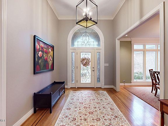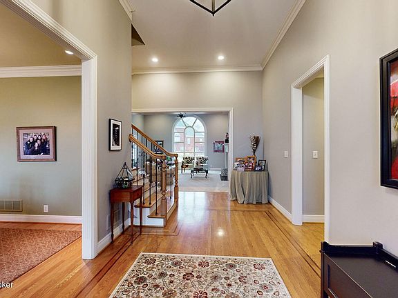 Stunning home located on one acre of land in the beautiful community of Hillcrest and the North Oldham school district. This five bedroom, four and a half bath property boasts beautiful hardwood floors through most of the first floor. Enjoy the open living area that allows for ample entertaining space. The spacious kitchen has gorgeous cabinetry, granite countertops, and a large island with plenty of seating available. Just off the kitchen you can enjoy the outdoors with a beautiful screened in patio. The first floor primary bedroom is enormous and includes an en-suite with a jetted tub and a massive walk-in closet. Upstairs you will find three additional bedrooms with walk-in closets. One of the bedrooms has its own private bathroom and the other two bedrooms share a jack and jill bath. In the partially finished walk-out basement, you will find a large family area complete with a home theater system that stays with the home, a gaming area with a full wet bar, a fifth bedroom and a full bathroom. In addition, the sellers have added a fully sound insulated office in the basement complete with glass french doors to allow lots of natural light. Plenty of additional storage is available as well. Out back, you will find a fully functioning hot tub that remains with the home, as well as a lovely patio with great views of the large lot. The three car garage has recently had the floor coated with a non-slip epoxy for a truly finished look. Brand new roof added in Dec 2023.