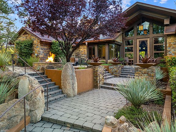 This home remains pleasantly cool during the summer, thanks to its abundant shade and numerous inviting outdoor spots perfect for relaxing in the breeze. You can also enjoy one of four stunning fireplaces—two located indoors and two outdoors. Escape from the world with picturesque views of the 18th hole and a serene pond at the nationally ranked Rim Golf Club. A private path leads directly to the 18th fairway, offering easy access to the clubhouse and the nearby Mountain Spa. Just a quarter-mile away, the spa offers workouts, poolside relaxation, massages, nail services, and pickleball.
