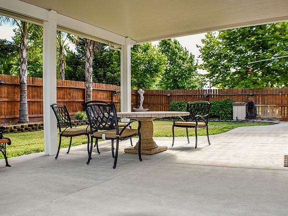 This beautiful Clovis home within gated community is beyond move-in ready. This extremely well cared for home sits on a corner lot and features 3 bed / 2 bath, an office area, formal dining room and spacious open kitchen and living room concept within its 2717 sq ft. The kitchen boasts an oversized island, abundance of counter and cabinet space, pantry, SS appliances and custom cabinetry pull outs. The master bed and bath features large soaking tub, walk-in shower, double vanities and custom built-in closet organization. The back yard is private with plenty of storage for toys and necessities, a covered patio with built in bbq, storage shed, and established RV parking with easy open gate.Sparkling garage, leased solar and located conveniently across from Thorburn park.