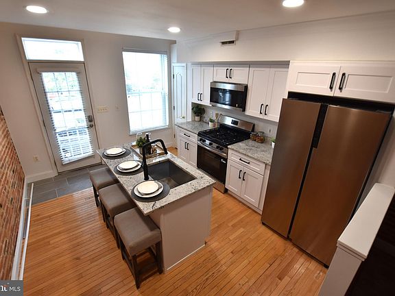 Located in the Heart of Canton find this brick 3 story, roof deck, stone courtyard, 2 bedroom 2.5 bathroom home. The kitchen is new with the full checklist: Island, Stainless appliances, granite, gooseneck bronze faucet, shaker cabinets, and a 5 burner gas stove. The first floor offers hardwoods in the kitchen and dining area, and a heated floor in the living room. The first floor has the ever important half bath which is great while entertaining. The second floor offers the master bedroom with an ensuite including a separate tub and shower, new vanity and new floor. Also, on the second floor is a bonus room perfect for an office, fitness, library etc... The third floor has another bedroom, full bathroom and the entrance to the roof decks. The view from the top roof deck is amazing!