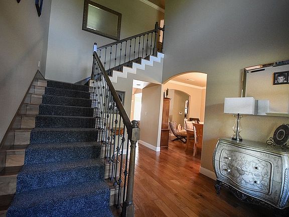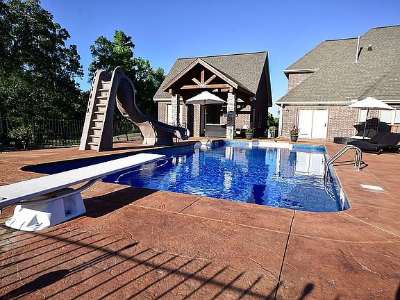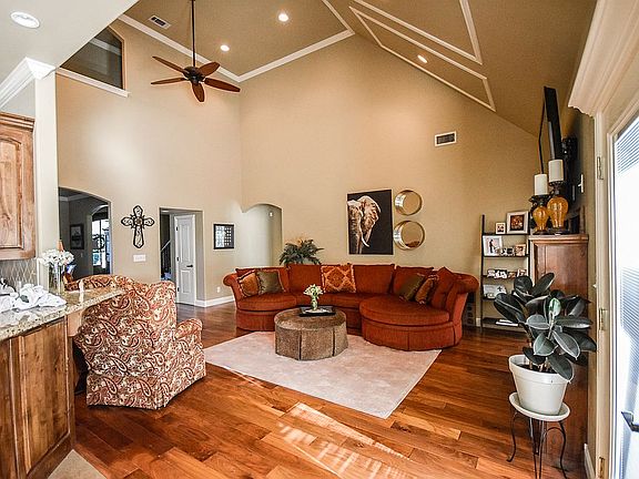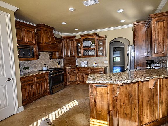 Stunning home, picturesque setting just outside of town. Great floorplan with 2 master suites, 1 with sitting area and both with walk in closets and en-suite baths. Tiled showers, and soaker tub in one. Granite counter tops throughout downstairs. Two bedrooms, jack and jill bath and a media room upstairs. Gorgeous dark cabinetry and warm tone hardwood floors. Carpet and ceramic tile in other rooms. Fenced back yard area with in-ground, salt water pool, covered patio...perfect for entertaining. Pretty views