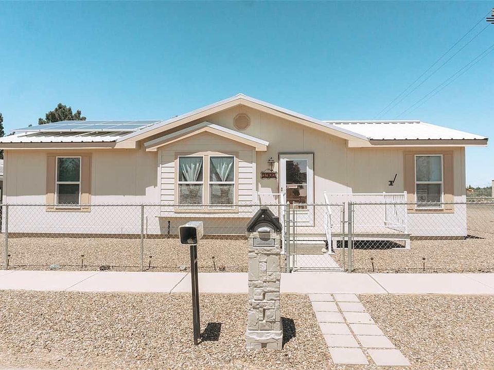 Great home in Deming Estates. HOA 55 plus community. 3 bedroom 2 bath home ! Metal roof. Also 12 solar panels installed 6/2011! 2006 Schults home. Full RV hookup. Carport. 2 storage sheds. Nice front deck to enjoy! Open floor plan. Split floor plan for bedrooms. Refridge installed in 11/2019. Lots of newer features!