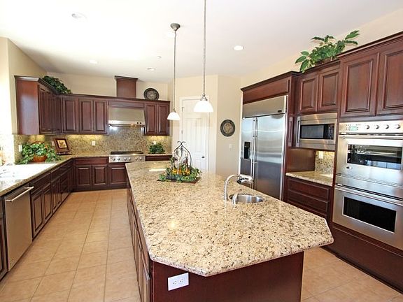 The Sheridan Mission features attractive stucco exteriors with recessed windows and a covered entry. Upgrades include hardwood floors, cherry cabinets, stainless appliances, Berber carpets, chandeliers, slab granite cntrs, built-in refrigerator, and more. Low maintenance bkyd, corner lot with view!!