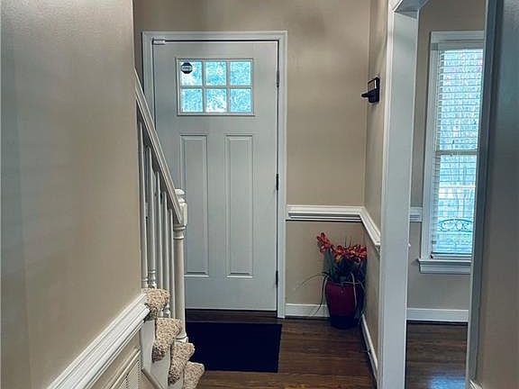 Welcome to this charming four bedroom, two and half bath house nestled on a cul-de-sac in highly sought after Brandermill neighborhood. This home has been meticulously kept and udated throughout the years. Enjoy sitting on the covered front porch. The large Great room has a wood burning fireplace with mantle, ceiling fan, chair railing and opens up to backyard deck. Formal dining room with hardwood floors, chair railing, and new light fixture. Kitchen has freshly painted cabinets, newer granite countertops, new light fixtures and luxury vinyl plank floors. Eat-in area of kitchen sits in beautiful bay window. Primary bedroom with private bath, walk-in closet and ceiling fan. Laundry area is upstairs with shelves and rod. Walk-up attic has spacious storage. All doors throughout house have been replaced. Bathrooms have freshly painted cabinets, granite and new light fixtures. Upstairs is completely carpeted and all bedrooms have ceiling fans. This adorable home is ready for you to move into right now!