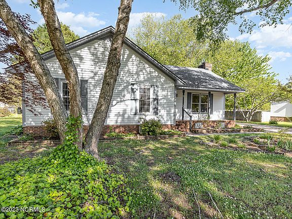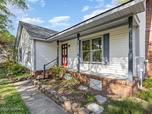 Charming, story book, bungalow with open front porch nestled 10 minutes from Downtown Wilson and 5 minutes to Barton College, Wilson Dog Park and Toisnot Park with fishing, trails, shelters, grill, skate park and I-95. Fixer upper with great bones but in need of a makeover/remodel. One level living with 3 spacious bedrooms and 2 full bathrooms. Open living space showcasing wood beamed vaulted ceiling and brick wall fireplace creating a cozy place to relax. The galley style kitchen has plenty of storage, a nice sized dining area, and leads outside to an over-sized entertaining deck.