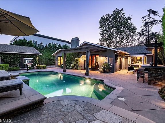 Introducing 2902 Walker Lee Drive, an exquisite California retreat that epitomizes the perfect blend of style, warmth, and entertainment. This captivating home, boasting over 2,500 square feet of living space, is a rare find in the highly sought-after Rossmoor neighborhood, with nearly 30 years since it last graced the market. The inviting curb appeal welcomes you with professionally landscaped yards, herringbone brick walkway & porch, a charming Dutch front door, and gated driveway that leads to a detached garage. Step inside and be greeted by the living room with its vaulted ceiling and brick fireplace, creating an inviting ambiance for family gatherings. The open & airy gourmet kitchen boasts white cabinetry, quartz countertops, and a large prep-island adorned with Calacatta marble. Cooking is a breeze with the 6-burner gas cooktop with hood, double-ovens, and farmhouse sink, all complemented with eye-catching bead board ceilings. Both formal and casual dining areas are conveniently adjacent to the kitchen allowing for seamless entertaining. The spacious family room features floor-to-ceiling stone tile fireplace, a stylish home bar to enjoy, surround sound and Andersen French sliding doors that open to the backyard creating an indoor-outdoor experience. Unwind in the delightful primary bedroom, accessed through double French doors, featuring a cozy fireplace and spa-like ensuite bath with dual vanities and a free-standing tub with floor-to-ceiling porcelain tile. Spacious dual walk-in closets with organizers add to the luxury. Custom touches throughout the home showcase the fine attention to detail. Amenities include generous sized guest bedrooms with walk-in closets, Hickory hardwood flooring, dual-pane windows, solid core 5-panel shaker interior doors and more! Home is equipped with central A/C and a security system. Step outside to your private oasis, where a sparkling salt-water pool and elevated spa await. The built-in BBQ island with stacked stone and refrigerator, outdoor gas fire pit, and spacious patio area with pergola provide the perfect setting to gather with family and friends. Ideally situated near parks, award-winning Los Alamitos schools, the “Shops of Rossmoor,” dining options, freeway access and just minutes away from the beach, this exceptional home captures the essence of Orange County living. Schedule a private tour today to discover all that it has to offer!