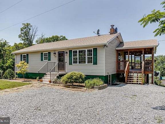 Wonderful property on 2.3 acres with fantastic mountain views from the extended family room/sunroom and large rear deck. This 3-bedroom, 3-bath house with gourmet kitchen and main level master also has a finished basement including a rec room with bar and fireplace; third bedroom and full bath; and second kitchen; there's even a wine cellar. The property includes a large pole barn divided into a workroom with wood furnace and a drive-through garage. The perimeter is fenced with a second fenced space for your garden; two chicken coops, one heated and air-conditioned; two sheds; and a variety of fruit trees, and grape vines. This property will provide a sense of peace and tranquillity as you watch the sunset over the mountain range from your deck.