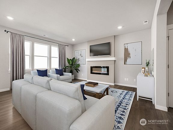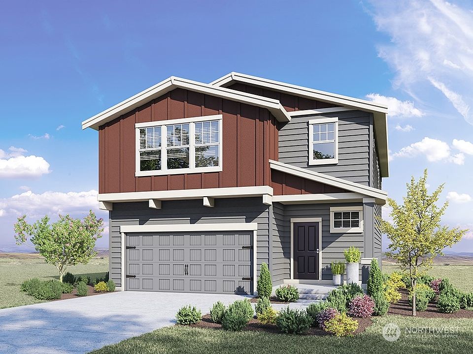 DR HORTON'S BLACK HORSE -The SELLWOOD 4 bedrooms + flex room on main & 2.5 bath 2 car garage w/front yard landscape, irrigation & fully fenced yard. Convenient 'drop zone' for a future bench/shoes off garage. Solid quartz counters, undermount sink, large center island, full height back splash, soft close cabinets w/stainless steel hardware. Modern fireplace ready for your flat screen above. Spa like Primary bath has a large soaking tub, double undermount sinks with quartz separated by large soaking tub under a window! Huge walk-in closet! Laundry room upstairs ! A/C included. MOVE IN READY! Smart features & warranty! Walking trails and community PARK - city water/city sewer. Smart home features included.