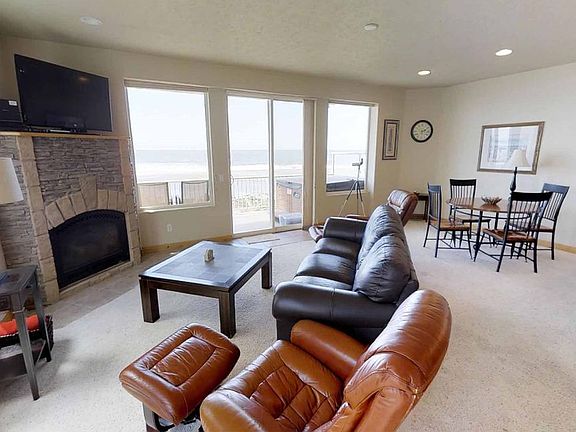 Successful OCEANFRONT vacation rental. This 2BR with loft is one of the most sought after rentals in the area. Sold fully furnished and ready to go! Living Room, Kitchen, Dining Area and Master bedroom have panoramic views of the ocean horizon. Gas fireplace. 2 Bedrooms - each with private baths (including deep soak tubs) and a loft for extra sleeping quarters or an office space. Large, covered patio,Hot tub and 2 car garage.