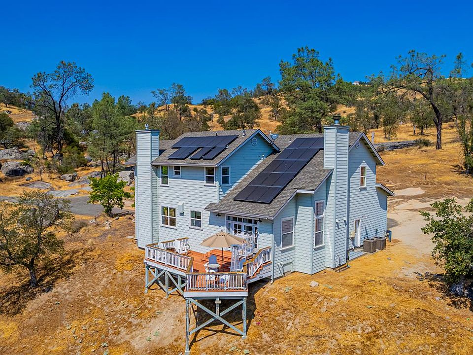 Retreat to this amazing 4-bedroom, 3-bath custom home built in 2008, set on 13.5 private acres in Yosemite Lakes Park just under an hour from Yosemite National Park. Designed with both comfort and function in mind, this residence offers a chef's kitchen featuring a 6-burner gas stove, farmhouse sink, and a spacious island perfect for the discerning cook and for entertaining. The open floor plan flows seamlessly to a large deck overlooking the property, where you can relax and take in views of seasonal waterfalls, streams, and the natural landscape. And this property backs up to a recreation area for hikers and horseback riding. Enjoy the benefits of owned solar for energy efficiency and reduced utility costs. Horse enthusiasts will appreciate the space and freedom this property provides, with plenty of room to ride and explore. Yosemite Lakes Park offers a wealth of amenities including golf, tennis, hiking trails, equestrian facilities, a clubhouse, and more. Whether you're seeking a peaceful retreat, an equestrian haven, or a base for exploring one of the world's most iconic national parks, this home offers it all. Don't miss the chance to own a piece of paradise where modern comfort seamlessly melts into natural beauty.