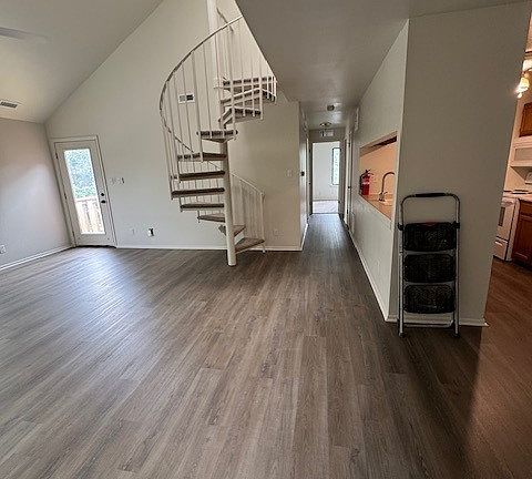 2 bedrooms, 2 full bathrooms. Primary bedroom has 2 closets and own full bath with separate tub and shower. Added loft for additional living space. Painted throughout, new flooring throughout (rugs in bedrooms and loft), vinyl plank in bathrooms, hallway, living & kitchen. There is also an outside deck of the living area. Appliances include refrigerator, dishwasher, range, microwave, washer & dryer. 1 designated parking space per unit Water & sewer included in rent. Tenant responsible for gas, electric & internet provider.