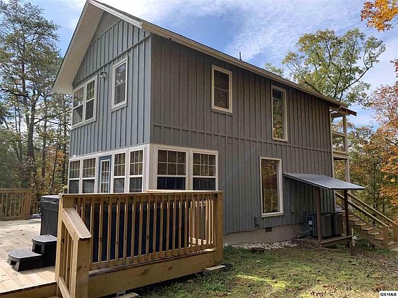 Charming cottage style cabin in the heart of Pigeon Forge. This cabin is tucked in the woods with a private setting/ There are double front covered porches and an open deck with hot tub and plenty of room for outdoor enjoyment. Completely remodeled and turn key with no steep roads. Very private open floor plan with great room, kitchen, dining, den/game room, laundry & 1/2 bath on main. Upstairs there are two master suites with full bathrooms. Sunroom off of one of the bedrooms offers tranquil space for relaxing or additional sleeping. and covered porch off the other for quiet enjoyment of nature. The cabin is currently doing well on Air BnB overnight, sleeps 8.