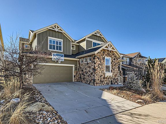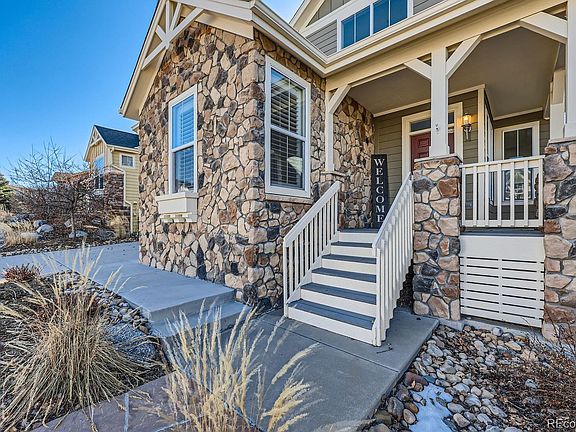 A showpiece of contemporary architectural prowess and innovative design, this rare and renovated offering yields an elevated living experience in the Meadows of Castle Rock. Situated on a walk-out lot, this unique 3821 square-foot home is a triumph of style and substance, showcasing exquisite craftsmanship, and cutting-edge design blended with historic charm. Every comfort has been considered and every detail meticulously included in this elegant 5-bedroom, 4-bathroom floor plan. The sophisticated gourmet kitchen features upgraded stainless-steel appliances, bar seating, granite countertops, and high-end maple cabinetry. This open-concept floor plan boasts natural light in every room as a result of its bright and neutral color palette, main-level hardwood flooring, elegant chandeliers, and oversized windows. The main level provides a spacious living room filled with natural light, gas fireplace, office retreat, and formal dining room. The owner's primary retreat showcases spa-like amenities including a walk-in shower, dual-vanity sinks, oversized soaker tub, and spacious walk-in closet with custom cabinetry. The upper level features two additional bedrooms, one bathroom, and a walk-in laundry room. The fully-finished basement showcases two guest-bedroom and a luxurious bathroom with jetted tub and shower. The rock climbing wall may easily be converted into a home gym or flex space and a functioning kitchen bar is the perfect addition to the entertainment room. This home contains a three-car tandem garage, epoxy-coated floors, and additional room for storage. The backyard is an entertainer's dream with newly installed professional landscaping, extended deck, and fire pit. The HOA includes the usage of the Meadow's community pool, clubhouse, parks, etc. Close proximity to DTC, DIA, I-25, C-470 & Denver, this property is ideally located within south metro Denver. Just a short distance to the nearby shopping, trails & parks.