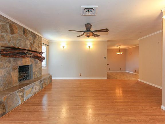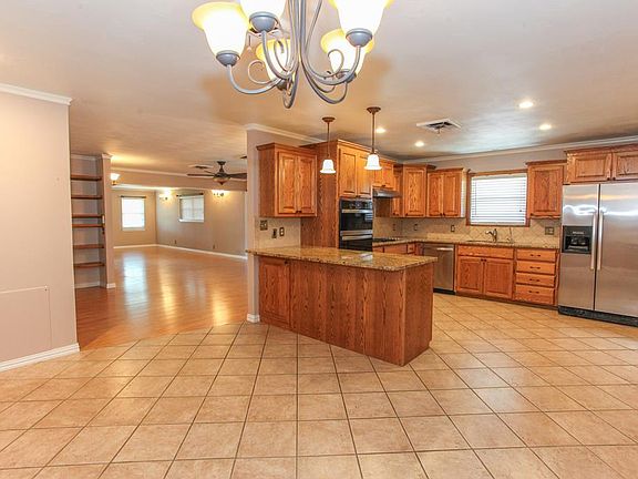 Wood burning fireplaceCinderblock fenceLarge covered porchRear entry garageStorage buildingStainless appliancesGranite countertops