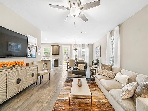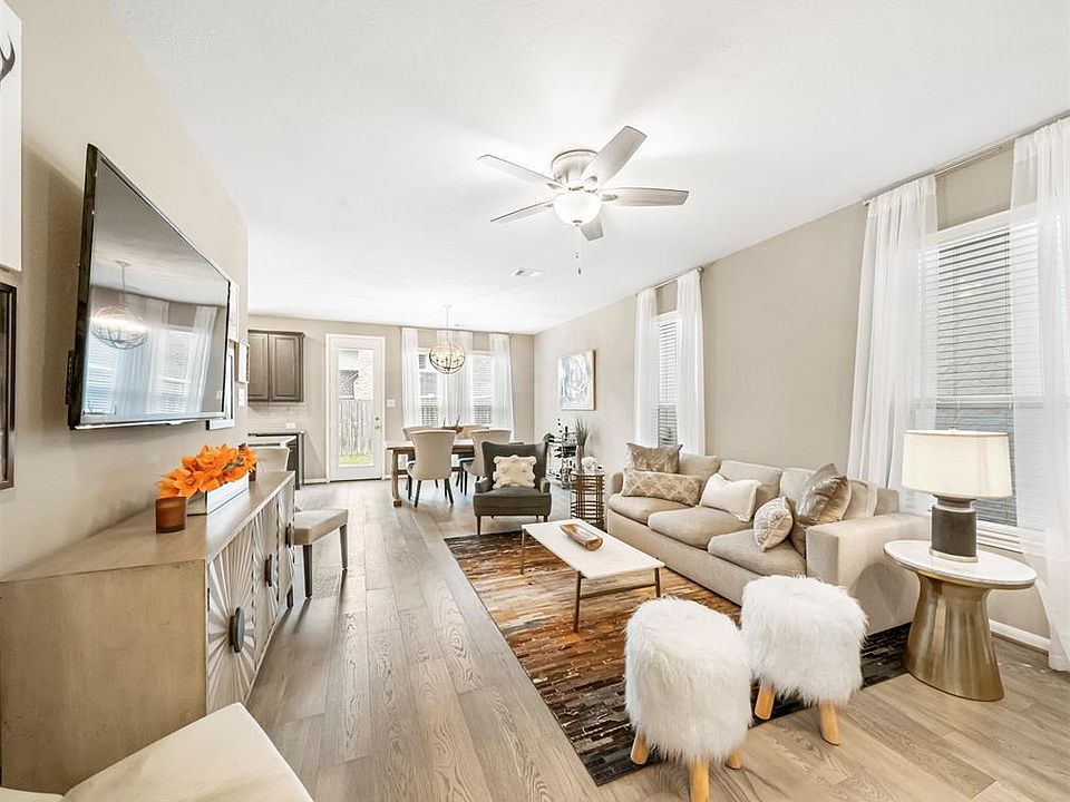 Gorgeous recently constructed home in gated community in the heart of Spring Branch is nestled between I-10, U.S. 290, and the Sam Houston Tollway. With over $25K in upgrades features include an open floor plan with hardwood floors throughout the living areas, 9 ceilings downstairs and window coverings throughout. Foyer leads to study with nearby powder room and spacious living room opens to dining and kitchen with backyard views. Gourmet island kitchen has breakfast bar seating, upgraded 42 cabinetry with granite counters & subway tiled back splash and stainless steel appliances including double ovens. Large game room upstairs and master suite with spacious 9x7 walk-in closet has master bath with dual sinks, garden tub & separate shower. Secondary bedrooms with convenient access to full bath with walk-in shower and nearby utility room. Backyard includes new sod and sprinkler system and home is at the end of the subdivision with no neighbors on one side and large side yard.