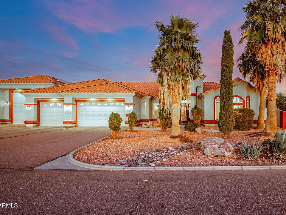 Get ready to fall in love with this gated community and beautiful desert oasis home with vaulted ceilings and tile flooring. The expansive chef kitchen is loaded with granite counters, breakfast bar, gas range, wall oven, eat-in with bay window overlooking the backyard, in ceiling speakers and an island. The large family room boasts an attractive built in space and open design with in ceiling speaker. The master bedroom features a private loft, vaulted ceiling, walk-in closet, and private entrance to the breathtaking backyard. The backyard is your own private oasis with RV gate, separate gated side yard. Spacious 3 car garage with and additional RV garage, with office space and tons of storage. Additional side lot to develop as you desire.