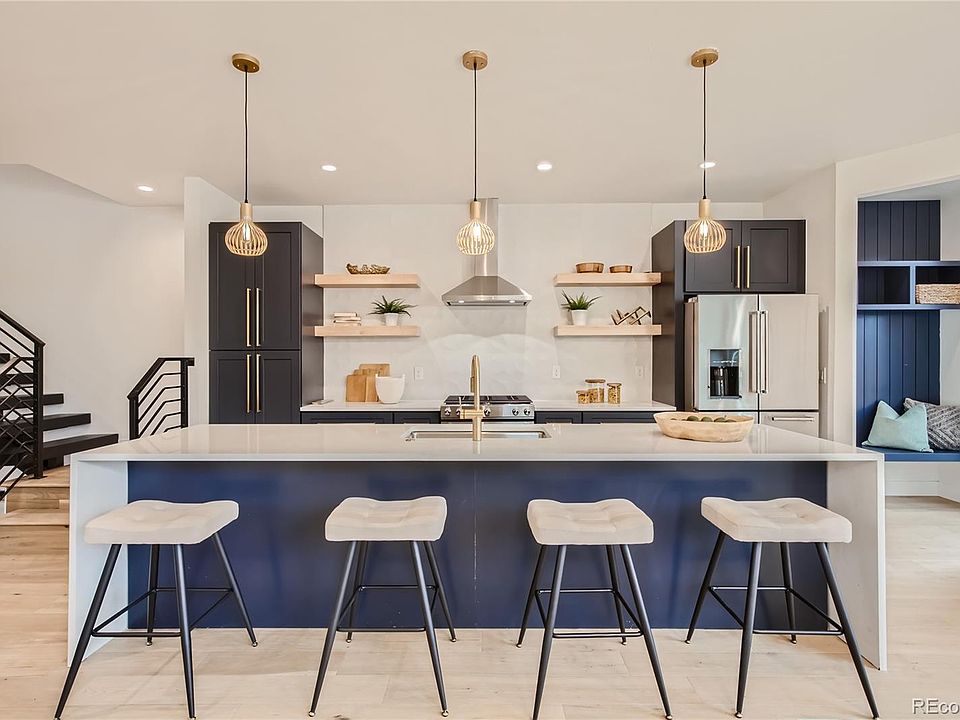 Stunning Brand-new modern construction duplex 5Bed/5Bath with four levels of living located in SoBO with beautiful mountain views. This home features open concept main floor living providing abundant natural light with a modern eat-in 12 ft island with waterfall, Gas fireplace, beautiful vanities, High end kitchen Aid appliances, hardwood floors throughout the house and designer grade Pella 250 series windows, Custom-built wood and metal staircase, 2 Wet bars, 2 Laundry rooms, Floating large 24†cabinets with overmount sink in all bathrooms setting the tone for the impeccable craftsmanship throughout the home. Upstairs, you'll discover three spacious bedrooms. The primary suite is a true retreat, boasting walk-in closets and a 5-piece bath with a luxurious European-style tub for ultimate relaxation. Laundry on the second level and lower level with third level loft with a wet bar and outdoor deck and a finished basement with high ceilings and lots of light. In the basement, a large entertainment room with wet bar (wine rack cabinets) area awaits along w/ bedroom, walk-in closet and a spacious full bath. This home operates on a high end most expensive tankless water heater and 2 HVAC systems to cover all 4 floors. The yard is fully landscaped with fence and plants installed with sprinkler system. 2-car detached garage that is electric or hybrid car ready. This home has lot of potential for AirBnb with huge amount of space. Close to schools, 285, I-25 access, the light rail, beautiful parks, shops, restaurants and bars. Walking distance to so many restaurants, Starbucks, Kaladi, chipotle and few minutes' drive to Costco, King soopers and Walmart Buyer to verify taxes (not yet assessed) & square footage. "PRICED WELL BELOW THE COMPS FOR QUICK SALE". Seller has several incentive programs (one of them offering 17.5k towards down payment and closing cost-Free Money) and also acquiring lower interest rate so call the listing agent for details.