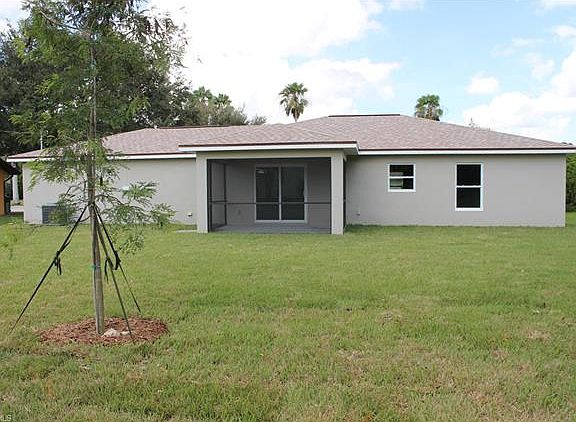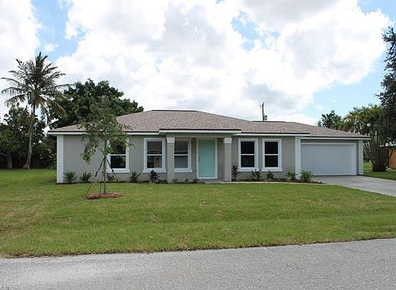 BRAND NEW CONSTRUCTION! Come take a look at this beautiful, new home in a wonderful neighborhood in Cape Coral. All the assessments are paid! The lot is large and flat with plenty of room to add a pool. This home is in a great, central location right off Santa Barbara Blvd. This brand new home is not in a flood zone, so no flood insurance required! This home offers a wonderful split 3 bedroom, 2 bathroom, 2 car garage plan. It features granite counter tops, stainless steel appliances, double sinks in master, large walk in master closet, 2 linen closets, tile in all areas except bedrooms, impact resistant windows-no shutters to put up, rainbird irrigation system, nice screened lanai, the list goes on. This is a beautiful home!