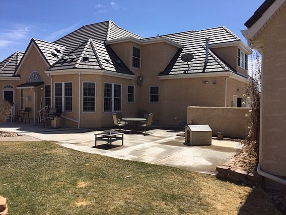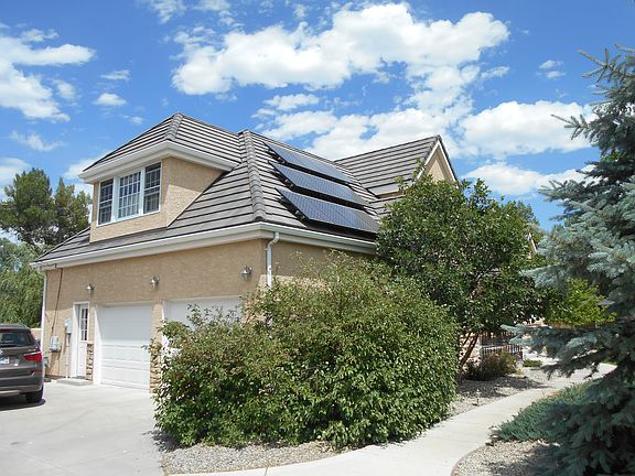 This is an exceptional custom-built home in an upscale neighborhood has breathtaking street appeal, mature landscaping and a southern exposure. It backs up to open space, the Rio Grande River (a short walk away) and has views of the Sangre de Cristo Mountains. A nearby private lake offers waterfowl viewing and magnificent sunsets. In addition, a walking trail is also close by. EXTERIOR: The street appeal is a plus. The back yard is tastefully enclosed by a stucco wall and large metal gate for easy commercial access. The yard presents a greenhouse and two raised beds to enhance your horticultural skills. A large patio and a natural gas outlet for your grill make entertaining a joy. There are two hot and cold exterior hose bibs. The sprinkling system is self-draining and electronically controlled. An oversized unattached garage with a full attic is a great addition. Outlets in the front and side soffits of the home provide easy access for Christmas lights. Solar panels generate additional electricity. And slate tiles give the roof longevity. There is adequate space on the east side of the home for RV storage, if desired. INTERIOR: Inviting vaulted ceiling in the entryway welcomes one to the interior of the home. A well-lit living room/library has its own gas fireplace, tasteful mantle and shelving. The large main-floor master suite boasts an egress to the back yard, a natural gas fireplace, his and her walk-in closets, double sinks and a jetted Jacuzzi tub. Attic access is available and an Iron-a-Way built in ironing board. The cooing of doves will greet you in the morning while owls will serenade you at night and the perfume of lilacs is enticing. The family room has a vaulted ceiling, a natural gas fireplace and four oval skylights. The dining room provides space for memorable culinary experiences. The spacious kitchen includes a six burner Dacor gas cooktop with optional center griddle, a Thermador exhaust hood, a Kenmore electric double oven, a Kenmore French door refrigerator, a Bosch front-load dishwasher, Dynasty (by Omega) cabinets in red birch with wine rack and microwave cabinet. There are two sinks each equipped with a garbage disposal. A hot water dispenser makes tea time a breeze. The counter tops and that of the large central island were updated with imported Brazilian granite. The back splashes were renewed with tile as well. The kitchen also has egress to a large patio. There are large windows that frame the breakfast nook where one can enjoy a meal and view humming birds as they come to feed. Six oval skylights provide additional sunlight. The laundry/mud room has ample counter space, sink, multiple cabinets, closet, an Iron-a-Way built in ironing board and Maytag front-load clothes washer and dryer. The main floor is tiled throughout. The entire home is warmed by a radiant heat and serviced by a Beam whole-house central vacuum system. The floor coverings on the second level are mostly carpet. One of the upstairs bedrooms opens up through French doors to a Romeo and Juliet balcony that encourages serenades and moonlight. It also has a large walk-in closet and access to a Jack-and-Jill bathroom. The largest bedroom has a walk in closet and access to two attic storage spaces and the Jack-and-Jill bathroom as well. The third bedroom has its own ¾ bath and closet. The oversized 2-car garage has excellent storage and workspace for the do-it-yourselfer. Included is an 80- gallon hot water tank with a hot water pump on a timer. Progressive Home insurance estimates the reconstruction cost for the dwelling and detached garage at $886,250. This home is a must see and a jewel to own.