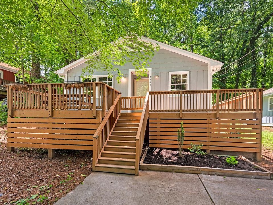 Welcome to a delightful property located in a desirable area! This move-in ready home offers a 4-car parking pad, fenced backyard, and a wraparound deck. With 3 bedrooms and 1.5 bathrooms, it provides ample living space for your comfort. Enjoy the convenience of being close to Costco, the West Ellerbee Creek Trail, and downtown, offering a variety of amenities and entertainment options. The backyard offers privacy with a protected wooded area behind it, and the proximity to highway I-85 ensures easy commuting to wherever your travels may take you. All appliances are included, making this home truly move-in ready. Don't miss out on this fantastic opportunity to own a beautiful home in a convenient location. No Restrictions.