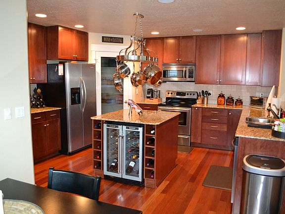 Immaculate custom built home centrally located in Coeur d Alene! This 2,990 square feet home features 5 bedrooms, 3 baths, 3 car garage, separate living & family rooms each with surround sound systems, beautiful rock fireplace, and big storage room. In like new condition with granite counters, hardwood & stone flooring. Has spacious rooms and closets, a large deck with beautiful "woodsy" view as well as trampoline pad/fire pit area out back for many hours of enjoyment!