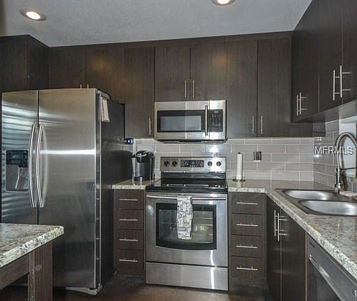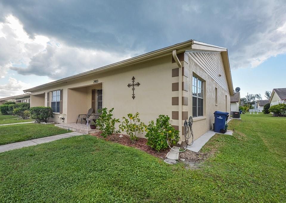 EVERYTHING IN THIS HOME IS BRAND NEW. Completely renovated to the nines. Brand new energy efficient A/C with UV filtration, roof, plumbing, and electric. New exterior and interior paint. New 5 1/4 baseboards, custom epoxy concrete floors throughout. Rustic laminate floors in office, brand new upscale carpet in master and dark expresso wood plank in baths. Master closet has a brand new $2,500 custom closet organizer. Custom and trendy 42 inch expresso wood grain cabinets in bath and kitchen w a marble and granite look on countertops. Brand new Samsung stainless steel appliances. Popcorn ceiling removed. Back patio enclosed and has hvac capability and brand new double pane sliding glass door. Extended deck for fun in the sun. Side custom concrete walk-way for easy access to trash and recycle bins. Brand new stackable washer and dryer INSIDE. All new doors, fans, chandeliers, lights, hardware. NO EXPENSES SPARED in this remodel. Corner unit. Safe neighborhood. Ideal location. QUIET street, towards the end/back, conveniently near mailbox. Seller firm. May consider Seller financing with ample down payment. Furniture negotiable. Everything has permits, lots of upgrades have transferrable warranty. Owner does not pay flood insurance. Security cameras and system do not convey.