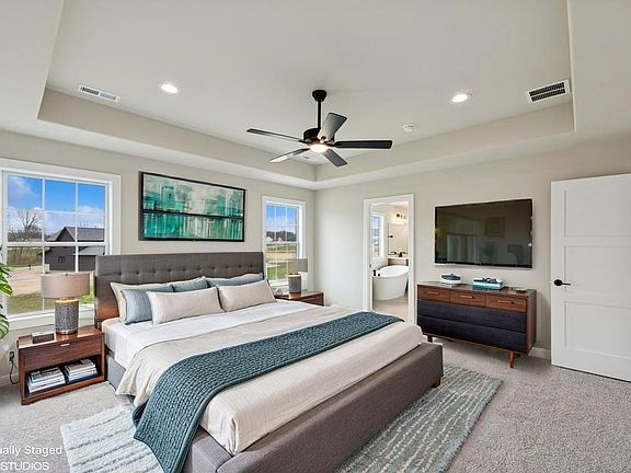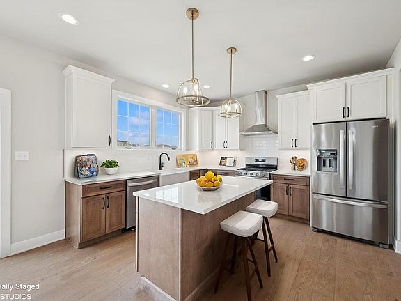 Welcome to 2903 Whispering Brook Lane - A Signature Home in The Brooks at Vale Park This beautifully crafted new construction home offers the perfect blend of luxury, functionality, and timeless design. Nestled on a fully sodded, professionally landscaped lot with irrigation, this home features LP SmartSide siding, Marvin windows, and a 12x22 composite deck with sleek metal railing-ideal for relaxing or entertaining. Inside, the open-concept two-story layout includes 4 bedrooms and 2.5 baths on the main levels, plus a fully finished basement with an additional bedroom, full bath, and spacious great room-perfect for guests or multigenerational living. The main floor showcases hardwood flooring, a formal dining room with custom wainscoting, and a light-filled living room with a cozy fireplace. The designer kitchen boasts Medallion soft-close cabinetry, quartz countertops, a porcelain farm sink, large pantry, and inviting breakfast nook. Upstairs, the luxurious primary suite offers a spa-like retreat with a fully tiled walk-in shower, freestanding soaking tub, double vanities, and a custom walk-in closet. Three additional bedrooms offer ample storage, while the spacious laundry room includes custom cabinetry, quartz counters, and a drop-in wash sink. Additional highlights include a zoned HVAC system, tankless water heater, all appliances included, and a 3-car garage with epoxied flooring, smart openers, and keypad access. Why This Home? Prime location near top-rated Valparaiso schools Community living close to parks, trails, and city amenities A turnkey opportunity with lasting value and exceptional craftsmanship Perfect for professionals and growing families who value quality, space, and a strong sense of community. Schedule your private showing today and experience elevated living at 2903 Whispering Brook Lane