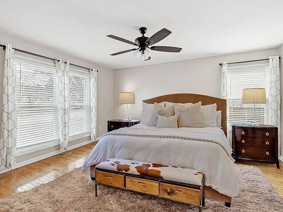 Step inside your new home in this well-established neighborhood with NO HOA! This 3 bedroom 2.5 bath also has an extra room that can be used as a 4th bedroom (it does have a walk-in closet) or as a bonus room. The primary bedroom suite is on the main floor and had a walk in shower installed and the 2 bedrooms upstairs share a bath/shower and toilet but have their own separate sinks which is so great for when everyone is getting ready at the same time. There have been so many updates over the last several years - including the upstairs HVAC unit, all new windows, gutters, and sliding glass doors. The deck has been replaced and an electric awning installed. The garage floor has been epoxied too! The gas fireplace logs have been replaced, a whole-house surge protector, all new smoke/co detectors and the downstairs was painted and the kitchen cabinets painted white to update and brighten the kitchen. Large pantry in laundry room. Lots of extra closets. Fenced backyard with raised garden as well as stick built shed. Sellers are offering a home warranty for the first year if entered in the offer.