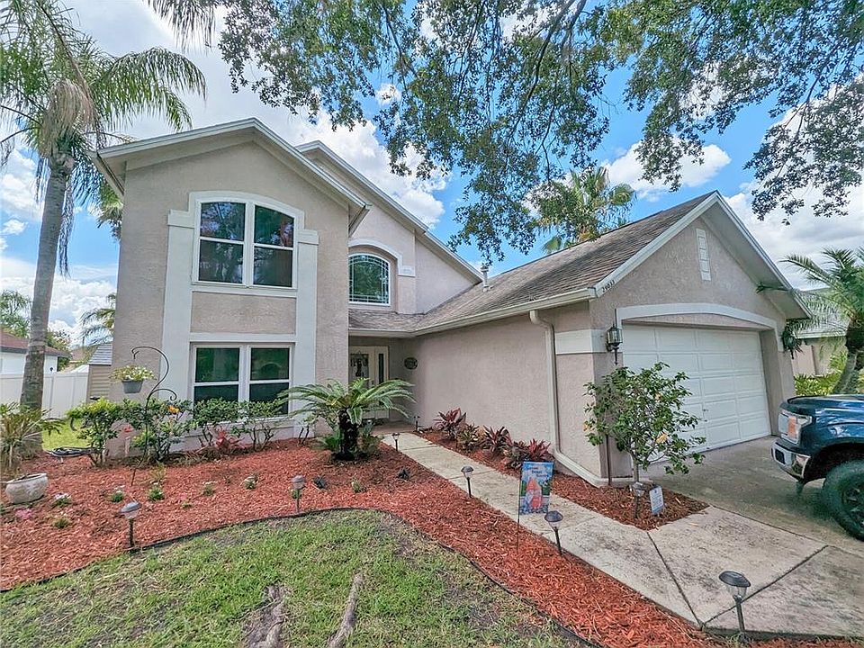 Welcome to your dream oasis in the sought after Meadow Pointe community in beautiful Wesley Chapel with NO HOA! This stunning 4-bedroom, 3 and a half bathroom home boasts luxurious features and a resort-style pool and spa, providing the ultimate in comfort, elegance, and relaxation. Step inside & be greeted by the spacious layout offering high ceilings and an abundance of natural light, creating a warm-inviting atmosphere throughout. The open concept living areas seamlessly flow from one room to the next, providing the perfect setting for both entertaining and everyday living. The gourmet kitchen is a chef's delight, complete with high-end stainless-steel appliances, custom travertine backsplash, and a raised breakfast bar. Prepare culinary delights while interacting with family and friends in the adjacent living area, making entertaining a breeze. The master suite offers a private sanctuary to unwind and recharge with walk-in closet, en-suite bathroom featuring dual sinks, a soaking tub, and a separate shower. The additional first floor bedroom is equally impressive, offering flex space that can be used as an in law-suite or guest bedroom, equipped with full bath and separate door leading out to the pool area. Upstairs features a loft, as well as two bedrooms and a shared bathroom. Step out back and you’ll arrive in your very own private paradise. The sparkling pool and spa beckon you to take a refreshing dip or simply lounge by the water's edge, soaking up the Florida sunshine. The expansive patio area is perfect for hosting outdoor gatherings, grilling, or simply enjoying tranquil evenings under the stars. Tons of mature tropical landscaping and freshly sodded lawn complete this outdoor masterpiece. Located in Wesley Chapel, this property offers a prime location with access to top-rated schools, shopping, dining, and entertainment options. Easy access to major highways and enjoy the convenience of nearby parks, hiking trails, nature preserves, and endless opportunities for outdoor activities. Complete HVAC replacement 2022, New Refrigerator 2023, water softener 2023, pool pump 2016, roof replaced 2014, new windows 2016. Don't miss this extraordinary opportunity to own a magnificent home with a pool and spa in Wesley Chapel. Schedule your private tour today and experience the epitome of elegance and relaxation that awaits you at 29033 Rivergate Run!