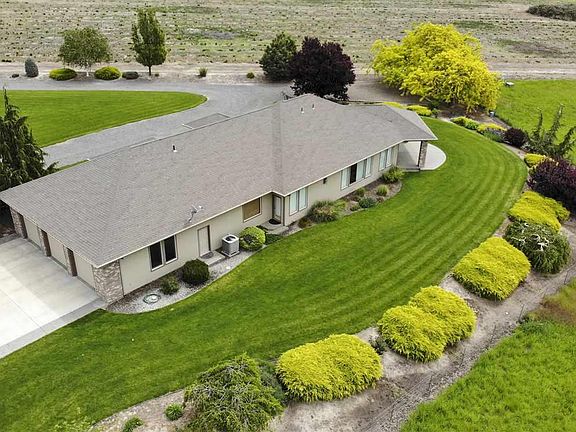 Custom built home situated among Hogue Ranches. The home was built in 2003 and features 4 bedrooms and 3 and a half baths. The half bathroom is located in the garage. Amazing views of the Horse Heaven Hills, Rattlesnake Hills and Mt. Adams can be seen out the large windows in the main living room. Solid core wood doors, custom soft closing cabinets and drawers, above and under cabinet lighting, alarm system, built in surround sound, central vacuum, built in humidifier, water softener, hot water on demand system, jetted tub, underground sprinklers through the property, gas fireplace, gas hook-up on covered patio, hard wood floors and extra wide hallways are just some of the amazing features this home has. Get your agent on the phone and schedule a showing.