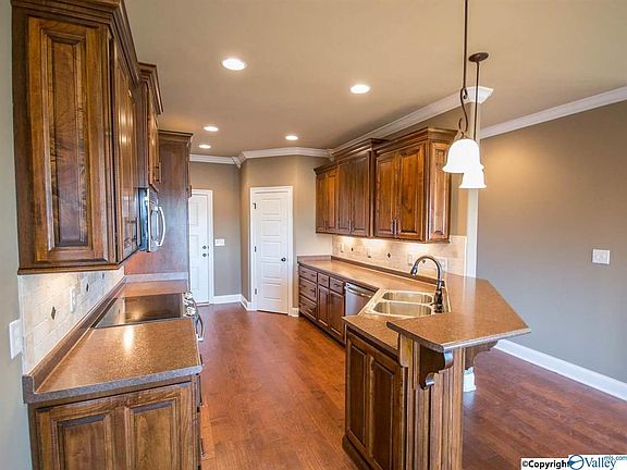 Less than 4 years old, this home has a beautiful view of the pond with an open floor plan. 5" hand scrapped hardwood, tile gas log FP, custom cabinets and Stainless Steel Appliances. The Kitchen has tile back splash with under the cabinet lighting. Large Mater Bedroom with trey ceiling and custom trim package. Glamour bath has double vanities, garden tub, separate shower and large walk-in closet. Oversized garage with fully sodded yard. Great Location only minutes to Huntsville.