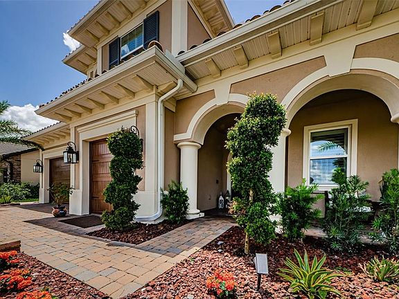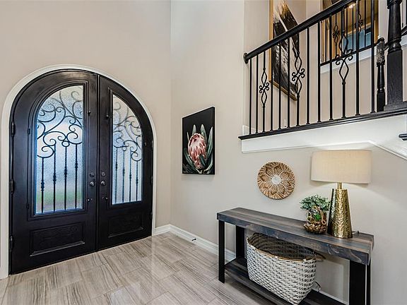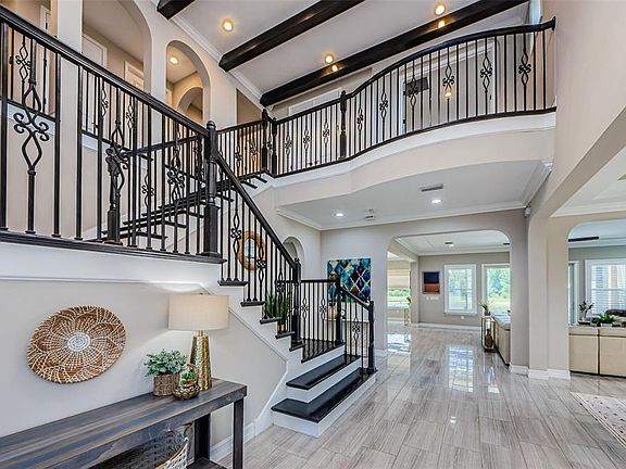 This is a luxurious Tuscany style 4 bedroom, 4 bathroom estate located in the highly sought-after gated community of Estancia. As you step into the cast-iron custom double doors you immediately sense the grandeur that awaits inside. The dramatic foyer features wood ceiling beams, chandelier, porcelain tile throughout the mail level and a stunning staircase with dark wood stairs and a wrought iron banister with a Juliet balcony. The formal dining room showcases coffered ceilings perfect for entertaining guests, and hosting special gatherings. The heart of the home is the spacious living room with a stone electric fireplace and views of the pool area, pond and conservation creating a serene ambiance for relaxing evenings. The chefs kitchen offers commercial JennAir Gas Range and Refrigerator, Quartz countertops, farmhouse sink and oversized island with stylish pendant lighting. The home also includes a whole house water softener system by Rain Soft. On the main floor, a guest bedroom and full bath offers convenience and privacy perfect for in-laws or visitors with easy access to the pool area. Upstairs, the primary suite impresses with wood flooring, tranquil views of the conservation and pond, and private access to the upstairs balcony. The spa-like en suite includes: Dual vanities, Garden tub and large walk-in shower, Custom-designed walk-in closet. Also upstairs: a media room with balcony access, two additional bedrooms, two full bathrooms, and a utility room with sink and built-in storage. The outdoor living area is simply spectacular. A true extension of the home, it features: a Full outdoor kitchen with Alfresco gas grill, Kamado Joe smoker, power burner, side burner, sink, and beverage refrigerator, Custom bench seating in light wood. This home offers one of the tallest panoramic screened cages (polystyrene material, hurricane-resistant) with a 45x22 saltwater pool with bubblers, pool lighting, waterfall, and chlorine generator and a Built-in fire pit for cozy evenings outdoors. There are too many upgrades to list from the high-end finishes to thoughtful design choices, to a whole house water softener system, tankless water heater to outdoor security system this home is truly one-of-a-kind. Don't miss your chance to experience this exceptional lifestyle in Estancia. Contact me today to schedule your private showing.