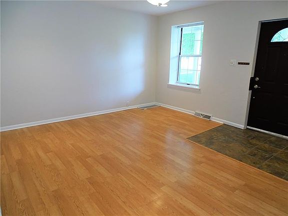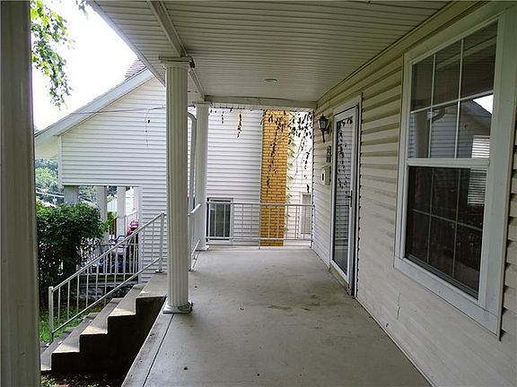 Welcoming duplex (left side) with large covered front porch to relax on. Step inside and admire the living room with recessed lighting and plenty of natural light. Dining room sports laminate floors and decorative fireplace. The Kitchen opens to the dining room, is neutral with tile floor and opens to a huge deck overlooking the backyard. Two spacious bedrooms (one with an additional decorative fireplace) are carpeted and have easy access to the large full bath and linen closet. Basement houses the laundry where you will find the washer and dryer for tenant's use. Basement has tons of usable space for storage. Detached garage. Brand new central air conditioning installed. Unit has been professionally cleaned. Brand new blinds installed. No pets. No smokers.