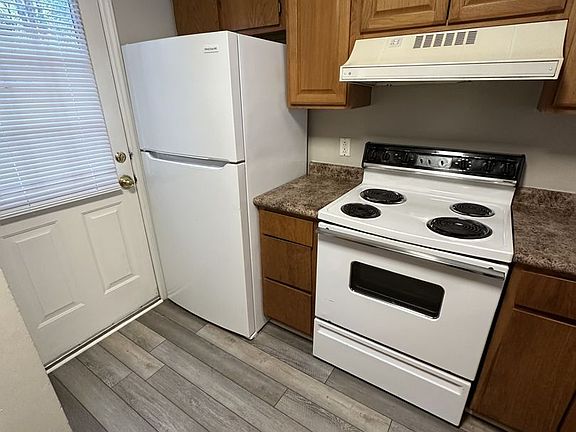 2 bedroom, 1.5 bath townhouse featuring vinyl flooring throughout the first floor. The kitchens equipped with a refrigerator, range, and dishwasher.