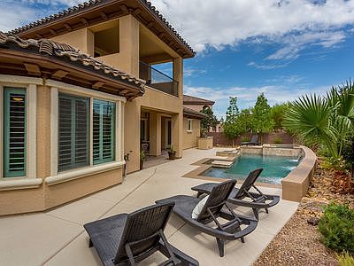 Cul-de-sac lot w/paradise backyard, lush landscape, pebble tech pool, spa, firepit, built-in BBQ, basketball pad, bocce ball court. Kitchen w/granite counters & custom back splash, SS appliances, double ovens, island w/breakfast bar, large walk-in pantry. 5 beds all w/walk-in closets & baths + office downstairs w/glass doors + media room + large loft/game room w/its own balcony. Master bed has shower, jetted tub, large walk-in closet & much more
