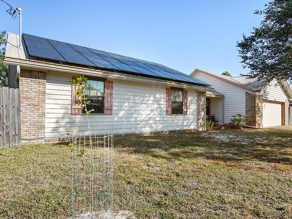 - Exterior features: Hurricane shutters, Lawn, Pest Control included in rent, Storage Shed, solar panels