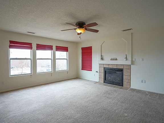 3 bedroom, 2 1/2 bathroom home. 2-car garage with automatic garage door opener. Spacious, privacy backyard with 10x12 concrete patio, raised planting bed, trees, lawn-area, and perimeter garden hedging. Refrigerated air conditioning and forced-air heating systems. Ceiling fans in every bedroom and in the living room. Gas-powered fireplace with blower. Appliances include matching washer/dryer, dishwasher, digital gas range/oven, upgraded faucet, Refrigerator/Freezer w/ automatic water/ice dispenser. Dedicated laundry room w/ large storage closet/pantry. Breakfast nook. Double-pane noise reduction windows throughout. Master bedroom and the guest bedroom have unobstructed sights of the Sandias and of the city. Master and second bedroom have large and spacious walk-in closets. Dedicated glass shower, oversize garden tub, and dual sink/vanities in the Master Bath. Manicured front yard, with mature trees, hedges, plantings, all on an automated watering system w/ controller in the garage. Wide streets and enjoyable walking w/ pet stations throughout the neighborhood. Cluster mailbox conveniently across the street, no walking just to get mail. School bus route stops across the street, as well. The Orchards of Anderson Heights is a gated community, featuring resident-only amenities including a gated pool and spa, changing/restrooms, expansive green, tree-filled park with basketball courts, sandlot playground, barbeque areas, gazebos, and a community-based garden plot. Truly a welcoming and warm neighborhood where evenings are filled with families strolling through the community or walking their pets. A wonderful place to call Home!