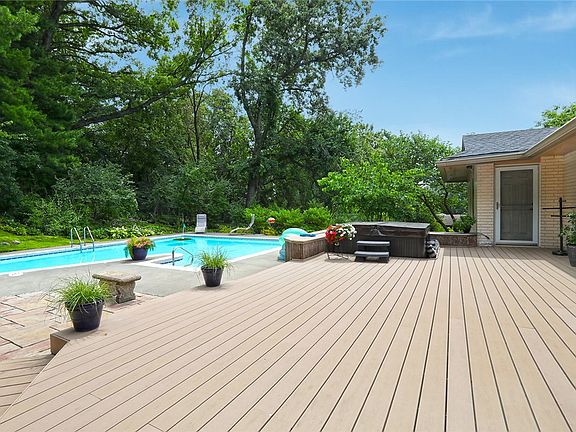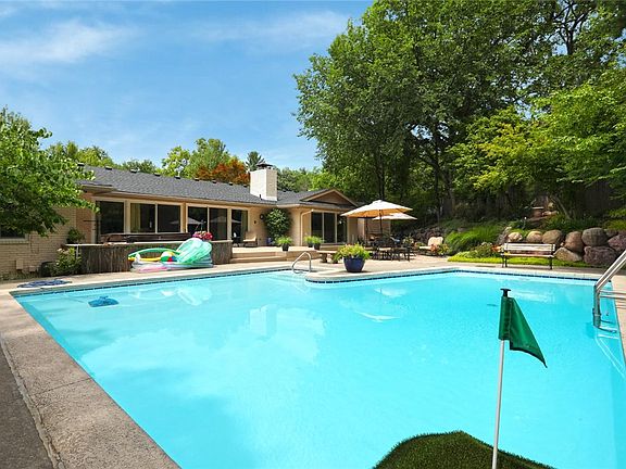 Welcome to the South of Grand community. Your chance to own a 4+ Bedroom brick walk-out ranch with a pool ! Enter into the front double door entrance, and you'll immediately see the view of the the back yard oasis through the wall of windows and sliding glass doors expanding the entire back of the home. A great home for entertaining friends and family, because the rooms are open and spacious. Double sided stone fireplace separates the two living rooms for separate conversation areas. Both casual and formal dining spaces. Custom kitchen with lots of cabinetry plus a workspace overlooking your manicured front lawn. Huge walk-in pantry and laundry conveniently located from the garage entrance. The primary bedroom suite has a private entrance to the pool and deck, updated bathroom with tiled shower and double vanity, plus walk-in closet and cabinetry for organizing your wardrobe and linens. Another tiled shower and bedroom on main floor. Walk-out level has 2+ more bedrooms and bath, plus a huge rec room. Lots of storage, including a craft room and workshop area.