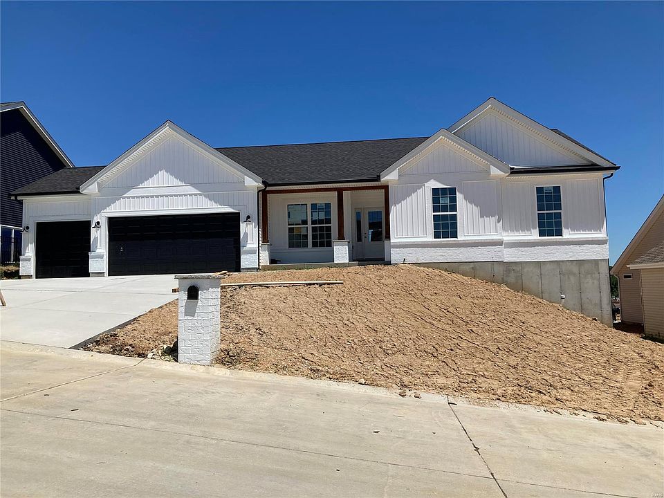 The Andover II is a popular 3 bedroom, 2 bath floor plan that includes a dining / study area, perfect for those working from home or who just need a little extra space! This particular home includes several luxurious upgrades such as vaulted ceilings in the main area and 9' throughout the home, gas fireplace with full masonry, 3x6 windows and a covered back porch. The kitchen features a massive walk-in pantry, granite countertops, center kitchen island, and upgraded 42" countertops. This Andover is also receiving a finished lower lever that includes a rec room, bedroom, bathroom and rough-in bar area. Visit and see what new construction has to offer right here in Washington, MO at The Overlook!