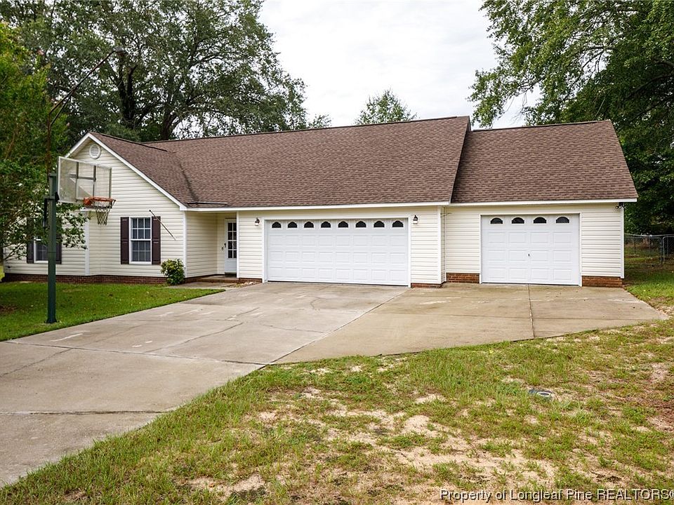 Don't miss your opportunity to own this well-maintained Ranch style home with 3 Bedrooms, 2 Baths, and 3 car garage. Enjoy the Large Living Room with Fireplace, and Kitchen with Dining Area. The Owners suite includes a walk-in closet, Owners bathroom with dual vanities, comfortable garden tub and separate shower. The backyard and patio are great for entertaining! Short commute to Fort Liberty, downtown Fayetteville, shopping and schools. New Carpet was installed in July of 2022, Water Heater installed in May of 2021, heat pump is 4 years old, and the Roof was installed in 2018. Only Owners to have lived in the home.