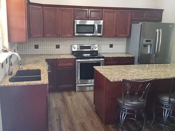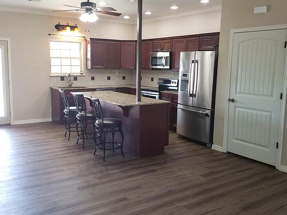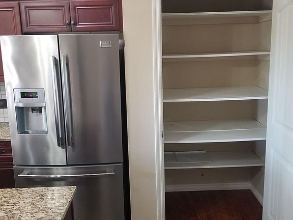 Newer home on quiet cul-de-sac, one block from Wayside school; split bedroom design; both a whirlpool tub and walk-in shower in master bath; wood-look Luxury Vinyl Plank through-out the house; open kitchen with large stainless-steel fridge, dishwasher and island. Bar stools included. four ceiling fans; large front porch; covered back porch with storage closet; decorative fence in back yard; opener for 2 car garage. No smoking. $25 application fee, extra pet deposit.