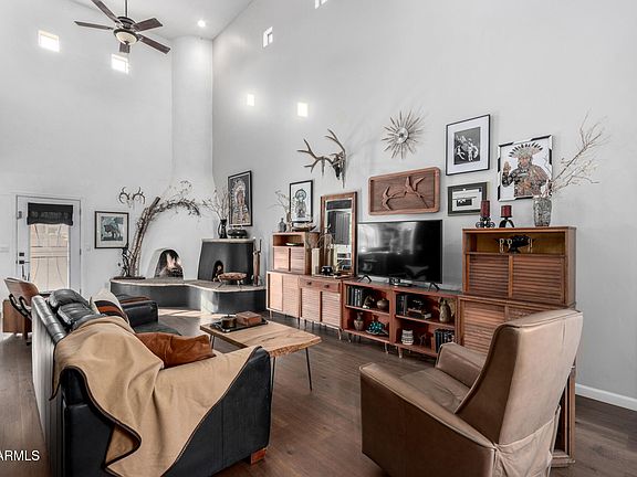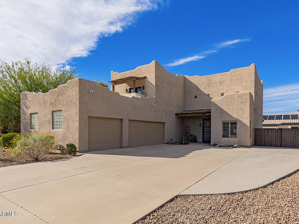 What a RARE find! This gorgeous custom home in Mesa Desert Heights has all the bells & whistles! Providing 4 beds, 3 baths, a delightful landscape, RV gate & parking, and a sided 3-car garage w/extended driveway. The fabulous interior showcases a distinctive blend of rustic and mid-century modern design elements, creating a warm and inviting atmosphere! Enhanced by plantation shutters, designer paint, exposed beams, tall ceilings, chic light fixtures, abundant natural light, and wood-look flooring throughout. You'll love the inviting living room, featuring a Kiva fireplace w/wood alcove! The cozy den is ideal for an office. The impeccable kitchen is a cook's delight! It offers high-end SS appliances, quartz counters, espresso cabinetry, a walk-in pantry, and a butcher block center island. The flexible loft awaits upstairs! Also including the double-door main bedroom that has an ensuite with a soaking tub, a glass-enclosed shower, & a walk-in closet. Its French doors open to the attached balcony, where you can unwind and enjoy the mountain views. If entertaining is on your mind, the backyard won't disappoint! With a full-length covered patio and a sparkling pool, it is perfect for year-round fun and relaxation. Conveniently near the Loop 202! What's not to like? This beauty is truly a MUST-SEE!