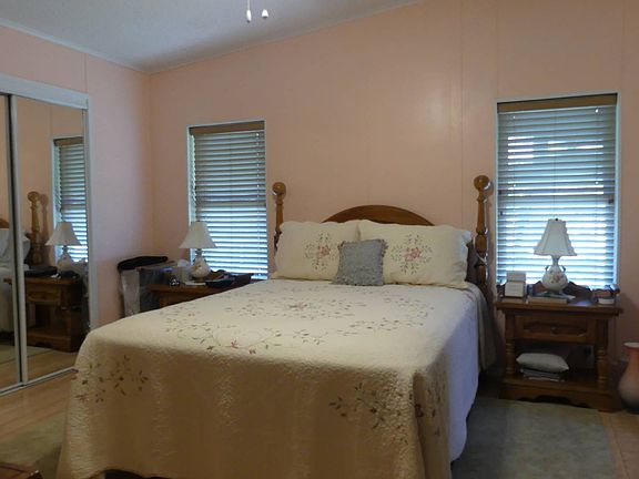 A very nice 1997 2bedroom 2 bath Palm Harbor Home with plenty of living space with a full front lanai with central air plus an auxiliary wall unit that offers both heat and AC, thermopane windows throughout, plenty of storage, updated appliances to include a Bosch dishwasher, stackable washer and dryer, laminate flooring through out and two large pantries. The extra large shed has been finished inside with beautiful grey panel board and could be an arts and craft area for the Mrs. or a great Man-cave for the Mr. or just another living space. The roof is 5 years old and the Air Conditioning system is 6 years old with an annual contract. This home is being sold partially furnish. Contact Cypress Lakes Sales & Information for more information and showing requests.