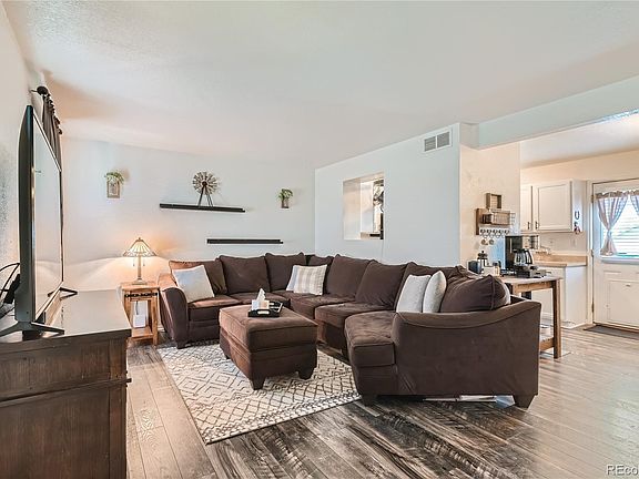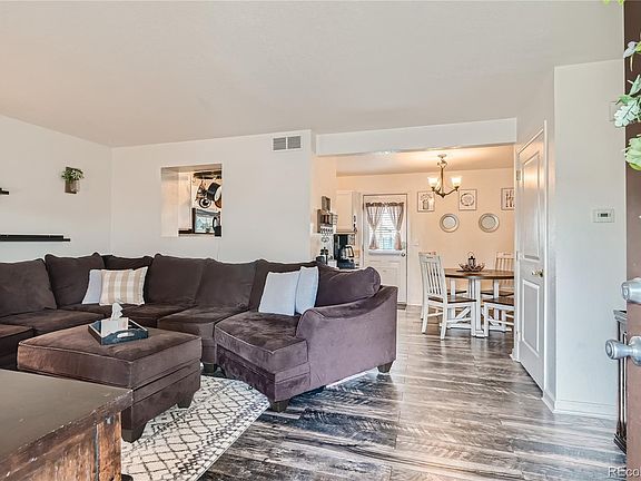 BRING ALL OFFERS. Motivated Seller. Incredible price for this charming two story home in Wolf Creek Run. The main floor features an open floor plan with beautiful wood floors throughout. Three bedrooms and 1 bathroom upstairs. Huge fenced back yard with a shed and dog run. Sprinkler system front and back. Enjoy gorgeous sunrises and sunsets from the covered front porch or back deck. There are 3 parking spaces directly behind the home and extra parking across the street for guests. The HOA maintains the front yards, common areas and includes snow removal and trash. The community offers a pool, covered pavilion with outdoor grills, and a park and playground. All of which are conveniently located across the street from this very well maintained home. Plenty of room to build a garage behind the fenced yard. Local schools are nearby. Easy access to I-70 and a short distance to DIA. Just 30 minutes East of I-70 and Tower Rd.