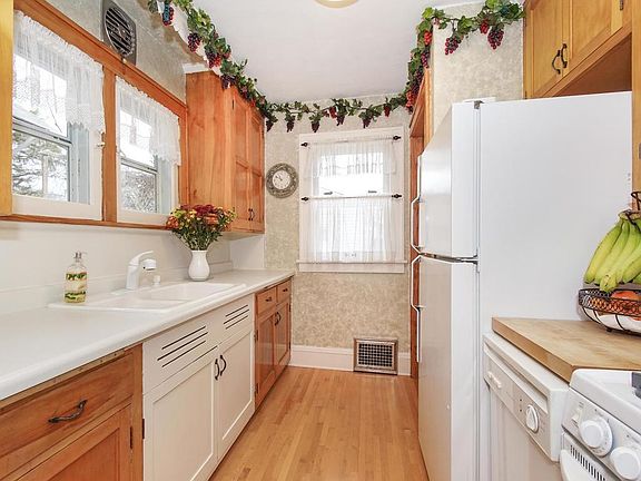 This home has been meticulously maintained! It is full of character and great features. Main level hardwood floors, beautifully restored trim, gorgeous cabinetry. Rare 2nd level bedroom with bathroom. 2003 finished basement with large windows, gas fireplace, full bathroom including heated tile and whirlpool tub, finished laundry room with front loading washer and dryer. Terrific storage in the with rolling track shelving. First time on market in last 30 years! You wont find a cleaner home!