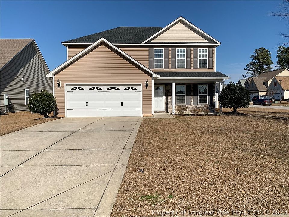 Sought after property in the Jack Britt, Honeycutt and John Griffin schools. Exterior has low maintenance vinyl siding with complementing stone accent on front of home. Very well maintained 2 story home on corner lot. Fresh interior paint, to include garage. Formal Dining Room off Kitchen. Family Room with gas log FP. Upstairs has an open Loft, which is perfect for an office area, TV area, kids play area, etc. All Bed Rooms upstairs. Large, privacy fenced yard. 2-Car Garage with AGDO. Front Porch.