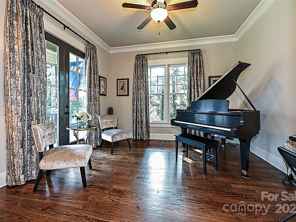 Stunning Myers Park home with easy living charm and elegance promises to captivate. Wide welcoming foyer flanked by Formal Dining and Den/Office with pocket doors and access to covered front porch via French doors. Fabulous kitchen with an oversized prep/serving island, 6 burner gas cooktop with dual ovens, casual dining, coffee station, and butlers pantry. Great Room with classic coffered ceiling and fireplace. Laundry Room with drop zone, storage, and runners shower. Luxurious Owners Retreat Up along with a trio of secondary bedrooms (one ensuite, one shared bath). Third level features Playroom and Ensuite Bedroom. Hardwoods on 1st and 2nd with exquisite moldings throughout. Covered back porch with fireplace overlooking back yard serenity. Patio with grill station. Detached 2 car Garage. Home Generator. Freedom Park nearby and quick access into the City. Kitchen Fridge/washer/dryer/beverage fridge in bonus/TVs in Primary and on Covered Porch to remain.