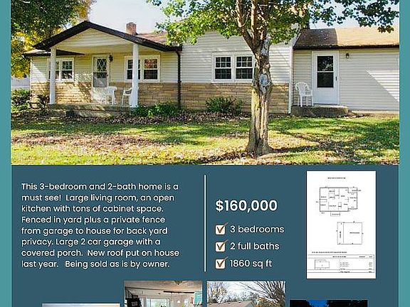 Enjoy being surrounded by beautiful trees and quiet living. Still close enough to town for convenience. This single-family home built in 1962 is located right outside of Charlestown off of HWY 3. Large living room, open kitchen with lots of cabinets, dining room we use as a play room, 3 bedrooms, 2 bathrooms and approximately 1860 sq ft of floor space. There is also an attic that can be converted into a bedroom. Large 2 car garage with an attic and covered porch. 0.67 acres fenced in plus a privacy fence from house to covered porch of garage for more privacy. Being sold by owner as is. Water with Otisco/Marysville. Electric with REMC. Started remodeling master bedroom but is not completed. Home was appraised at 174,600 a year ago for refinance. A new roof was put on after appraisal. Asking 160,000. Serious inquires with pre approval.
